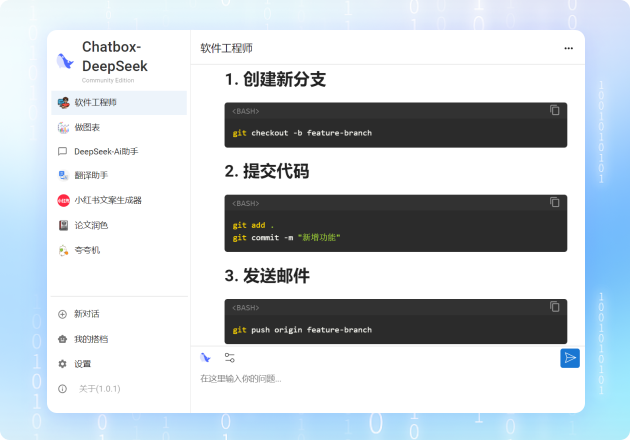 “之前做项目,代码写得我焦头烂额,错误一堆还搞不定,数据格式转换也麻烦。用了 Chatbox - DeepSeek,软件工程师功能帮我实时纠错,代码补全超智能,JSON to TS 一键完成数据格式转换,开发效率直接起飞,太香了!”